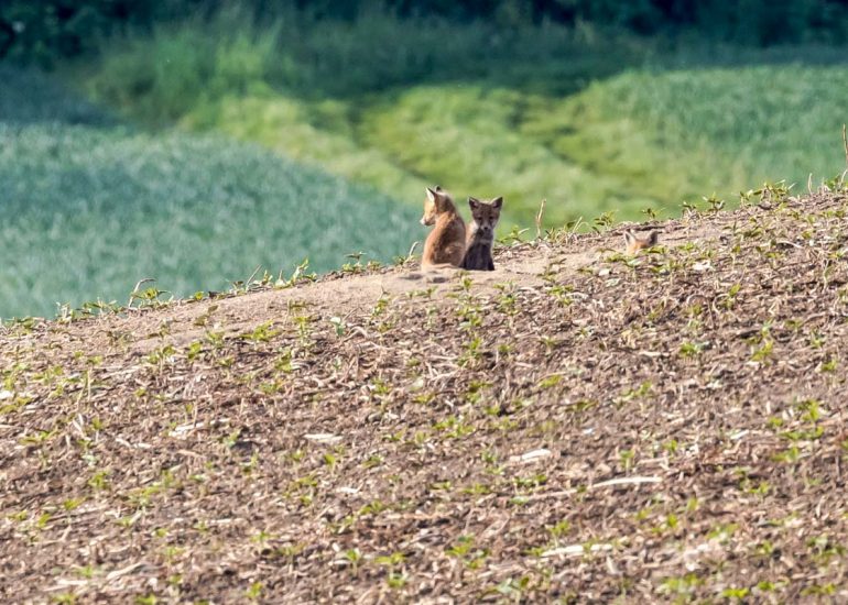Eine tolle Entdeckung: Jungfüchse im Sonnenblumenfeld