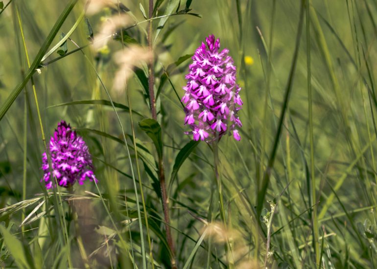 Eine sehr seltene Schönheit: Pyramiden-Orchis Die Pyramiden-Orchis kommt im Kraichtal an einigen wenigen Stellen vor. Auch sie ist – wie alle Orchideen-Arten – streng...