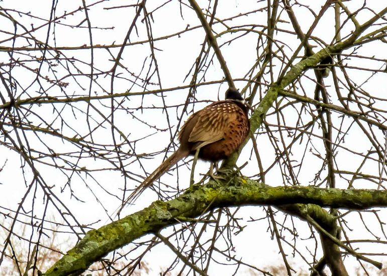 Auch das gibt es im Kraichtal: Jagdfasane auf Bäumen