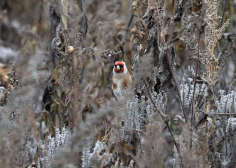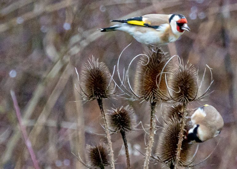 Die Wilde Karde ist bei Distelfinken jetzt sehr beliebt Zur Zeit ziehen einige Trupps von Distelfinken durch die Stillegungsflächen, Zwischenkulturen, Blühstreifen des Vorjahres und...