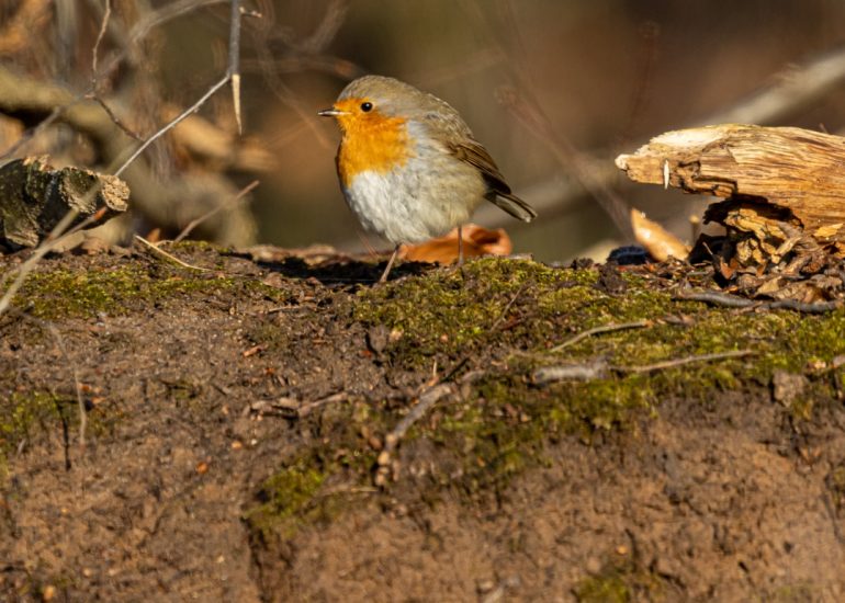 Man findet sie an lichten Waldstellen, Waldrändern und entlang von Feldgehölzen: Rotkehlchen