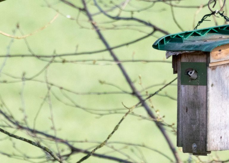 Die Feldsperlinge haben einen Nistkasten bezogen
